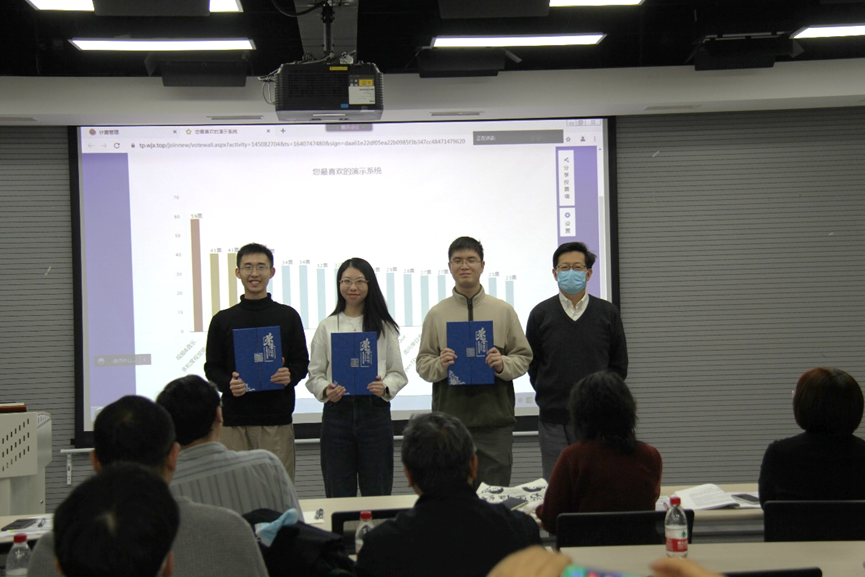 报告结束,进入海报展示与互动环节。与会老师和同学们积极体验展出系统,并与系统开发者进行了热烈的讨论,将现场气氛推向高潮。师生现场投票评选出优秀系统奖。