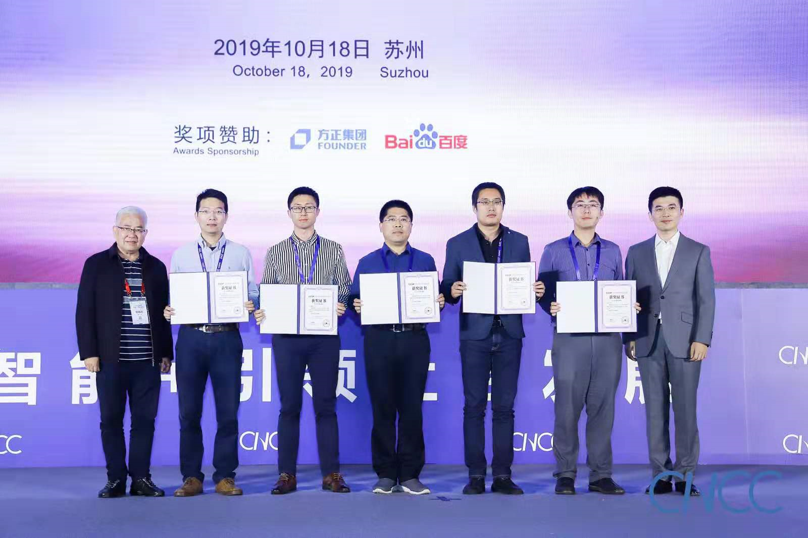 卢卫副教授(左二)代表人大领取CCF颁发的奖状