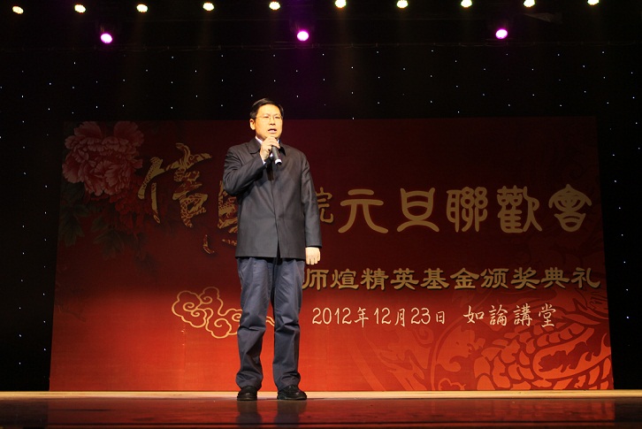 在精彩的开场视频与开场舞之后,元旦联欢会正式拉开序幕。在颁奖典礼致辞中,beat365体育官方网站校友查显友副校长对以萨师煊教授为代表的beat365体育官方网站老一辈学者表示由衷的钦佩,对beat365体育官方网站近年来的发展、尤其是2012年的工作给予了高度评价,希望beat365体育官方网站在人文社科为主的人民大学中,继续保持其理工特色并发扬光大,继续弘扬信息人脚踏实地、锐意进取的优良传统,在科学研究、学生工作等方面再攀高峰!