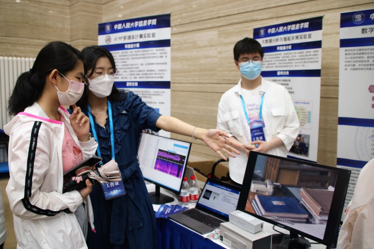 beat365官网今年共展出有四个展台,内容涵盖人脸情绪识别、AI生成歌曲、游戏制作体验等方面,收到了参与师生的一致好评,来beat365官网展台体验的师生络绎不绝。林尚立校长、沈洁书记也来到beat365官网展台前进行体验互动,并高度肯定了学院在人才培养、科研成果上取得的成就和突破。