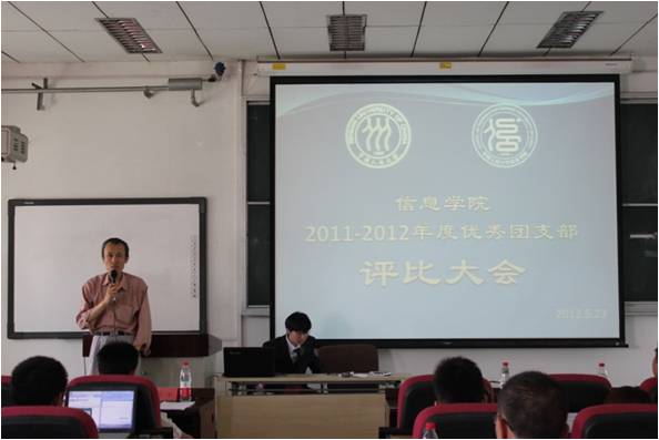 2012年5月23日下午14:00,beat365体育官方网站优秀团支部评比大会在信息楼四层报告厅成功举办。beat365体育官方网站党委书记林颐老师、党委副书记王甫银老师、分团委书记孙亚琳老师以及部分参赛班级的班主任应邀出席了本次大会。此次评比活动旨在展示各个团支部的建设情况、思想教育情况,对表现优异的支部进行表彰,并促进了支部之间的互相学习。
