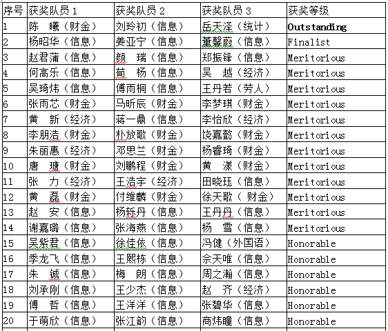 附2016年美国大学生数学建模竞赛获奖名单: