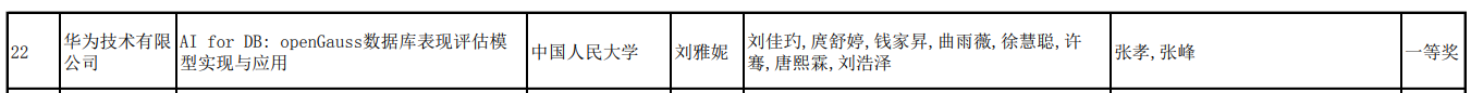 beat365体育官方网站张孝教授、张峰副教授指导学生刘雅妮、徐慧聪、许骞、唐熙霖联合财政金融学院、新闻学院、理学院和信息资源管理学院的同学组建了一个包含10名成员的团队进行参赛,取得了北京赛区复赛一等奖、入围全国总决赛的成绩。该团队选择了华为公司的命题“AI for DB:openGauss数据库表现评估模型实现与应用”,这一命题要求为华为建立一个数据库表现评估模型(Performance Model),可以在不执行SQL语句的情况下预测出该条语句的执行时间和相应的资源消耗,对数据库的参数快速调优、性能分析、健康状态评索引推荐和慢SQL发现等有着重要的意义,具有极强的实用价值。