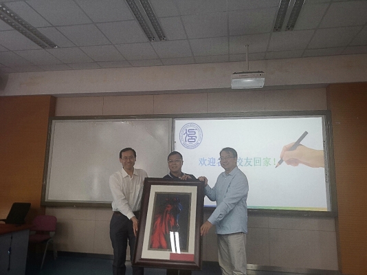 在座谈会结束之际,全体96级校友向学院赠送刺绣一副,以此寄托对学院教育的感谢以及对学院美好未来的祝福。