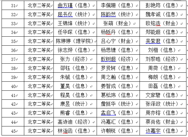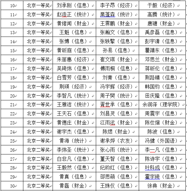 近日,2015年度全国大学生数学建模竞赛成绩已经公示,人大学子共有45支队伍获奖,其中2支队伍获全国一等奖,7支队伍获全国二等奖,16支队伍获北京市一等奖,20支队伍获北京市二等奖。近几年,beat365官网参赛队规模稳定在100队左右,获全国奖队数稳定在每年7~9支队伍,获北京市以上奖励队数稳定在50支队伍上下,与其他理工科见长的学校持平。这体现了以文科为主的beat365在线登录平台在数学和计算机基础教育方面具有与理工科为主的名牌大学同样的竞争力和影响力。