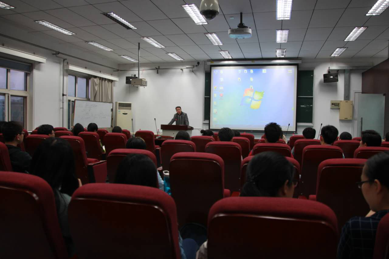 首先,杜忠朝老师进行开场致辞,介绍今年学院就业情况,分析当前就业形势,提醒同学们在研究生阶段的实习、求职注意事项。