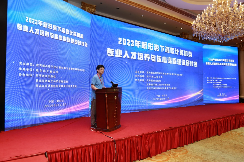 本次会议由教育部高等教育计算机类专业教学指导委员会主办,哈尔滨工业大学承办,高等教育出版社、信息技术新工科产学研联盟和黑龙江计算机学会教育工作委员会协办。旨在深入贯彻落实2023年全国教育工作会议精神及《教育部高等教育司2023年工作要点》,加强计算机类专业人才培养,夯实计算机类专业核心课程教学根基,推动高校一流课程与教材建设。