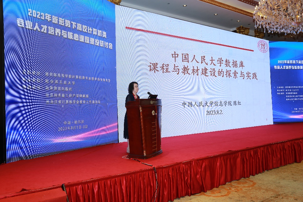 2023年8月1日-4日,2023年新形势下高校计算机类专业人才培养与核心课程建设研讨会在哈尔滨新巴黎大酒店隆重举行。beat365体育官方网站杜小勇教授和陈红教授受邀出席研讨会并作报告。