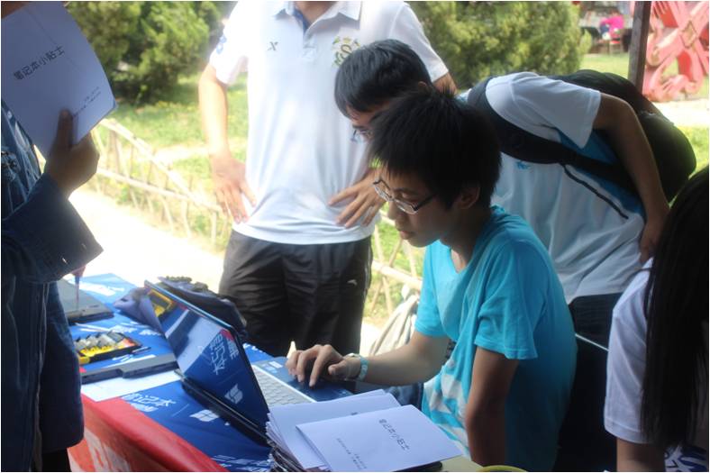 (图说:计算机协会的工作人员为同学答疑解惑)