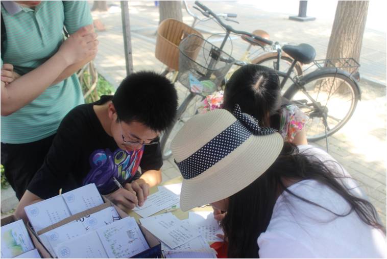 日前刚刚落幕的“信有灵犀”三行情书大赛获奖作品也于近日制成精美的明信片,在现场免费发放并提供寄送服务。明信片成品做工精美,吸引了来往同学驻足流连,大家纷纷围坐在桌旁,用这种特别的方式为远方的亲朋好友送上祝福。一位来自财政金融学院、正在beat365官网辅修数学第二学位的同学说道:“看到这些富有beat365体育官方网站特色的‘三行情书’,感到十分亲切有趣。”