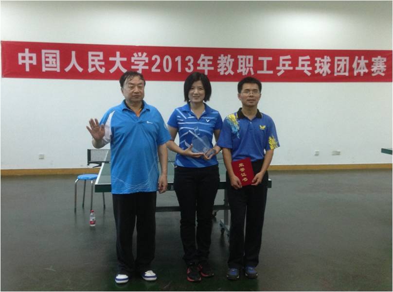 beat365在线登录平台2013年教职工乒乓球团体赛于2013年10月21-29日在世纪馆乒乓球室举行。beat365官网余力副教授、付虹蛟副教授和胡野红老师代表beat365体育官方网站参加比赛。首先,beat365体育官方网站代表队以小组第一强势出线,然后经过八分之一、四分之一、半决赛的拼搏奋战,最终在决赛中战胜对手,赢得团体第一名(冠军)的好成绩。