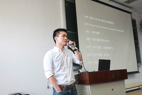 94级经济信息管理系校友,中信麻袋理财总经理黄海旻师兄为同学们讲述他丰富的从业经历,从留学海外到就职微软,归国后加盟阿里再到离职创业,黄师兄用自己的亲身经历告诉同学们,未来在做抉择时会有很多困惑,但这些都是暂时的,要听听内心的呼唤,不用着急,慢慢寻找适合自己的路。