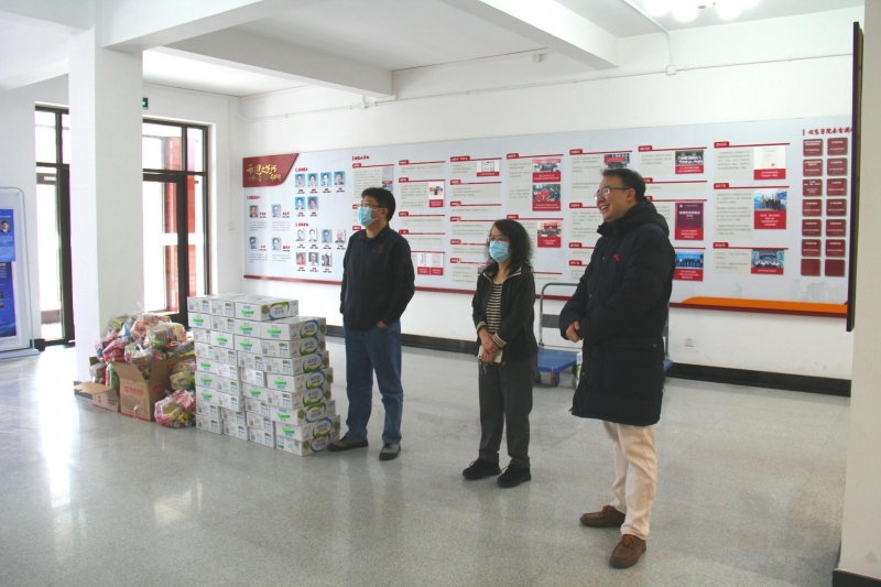 2月8日下午,beat365体育官方网站院长文继荣、党委书记陈红、党委副书记杜忠朝一行以“零接触”的方式在信息楼看望了37名留校学生,向同学们了解了留校期间的生活学习情况,并向他们发放了牛奶、香肠、零食、饮料等春节年货礼包。同时叮嘱留校同学严格遵守防疫要求,过一个充实难忘的春节。