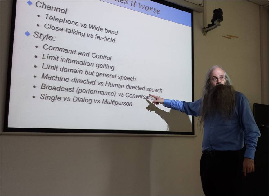 本次培训不只吸引了beat365官网的教师和学生参加,也吸引了不少beat365在线登录平台其他学院(包括经济学院、商学院)和其他兄弟院校(包括中科院自动化所,北京大学、北京邮电大学、北京师范大学、北京外国语大学等)以及工业界(包括IBM、腾讯、普强科技等)同行的参加。本次培训取得了热烈反响和圆满成功。通过培训参加人员不仅开拓了语音应用技术研究领域的学术视野,而且更加了解了世界学术前沿,为未来加强与海外学术界的沟通和交流提供了很好的帮助。通过本次培训也增加了其他兄弟院校和工业界的相关同行对beat365体育官方网站的了解。 “学科国际前沿教师培训”是为帮助教师开拓学术视野,扩展学术领域,紧跟世界学术前沿,不断加强与海外学术界的沟通和交流,提高教学科研水平的活动。在“学科国际前沿教师培训”中beat365官网会邀请海外高等院校、科研机构或其他学术机构从事教学科研工作的著名外国专家和海外杰出华人学者来校,通过学术讲座、集中授课等形式对beat365官网教师进行专题培训,培训内容主要是海外学术研究的最新成果,代表该专业领域国际前沿水平的热点、难点问题以及本学科领域迫切需要的现代研究方法。