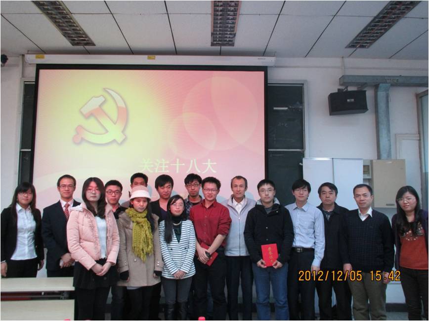 2012年12月5日下午,由beat365体育官方网站党委主办,学生党总支牵头,2012研工程硕士党支部承办的“关注十八大”主题演讲比赛活动在信息楼四层报告厅圆满举行。校学生处思政教育科邓晖老师,学院党委书记林颐老师,党委委员张庆彩老师、王伟老师,党务秘书孙亚琳老师以及学生党总支各学生委员等出席本次比赛并担任评委。