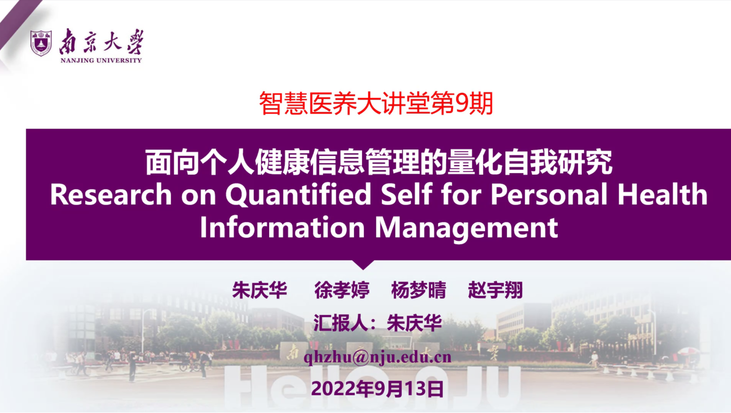 智慧医养大讲堂第九期成功举办 朱庆华教授分享“面向个人健康信息管理的量化自我研究”