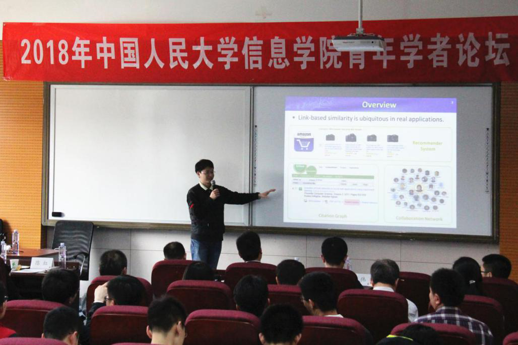 院长文继荣代表全院师生对参加本次论坛的青年学者表示热烈欢迎。文院长介绍了beat365体育官方网站特别是计算机学科的发展历程。他表示,近年来beat365体育官方网站努力跻身学术前沿,在拓展大数据、人工智能、产业化等方向做了许多工作,取得了良好成果。学院将加大人才引进力度,提高科研待遇,更新人才培养观念,为重点建设高水平平台而不懈努力,实现更好、更快发展。