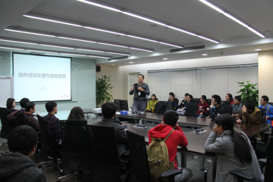 百度产品开发工程师和为博士于大厦春晴会议室进行了主题为“人工智能与语言处理”的讲座,并与同学们互动交流。和为博士表示,语言是思维的载体,理解语言是人工智能领域最具有挑战的人物之一。百度在自然语言处理方面开展了大量的探索工作,语言人工智能的未来还需要继续努力共同建设。