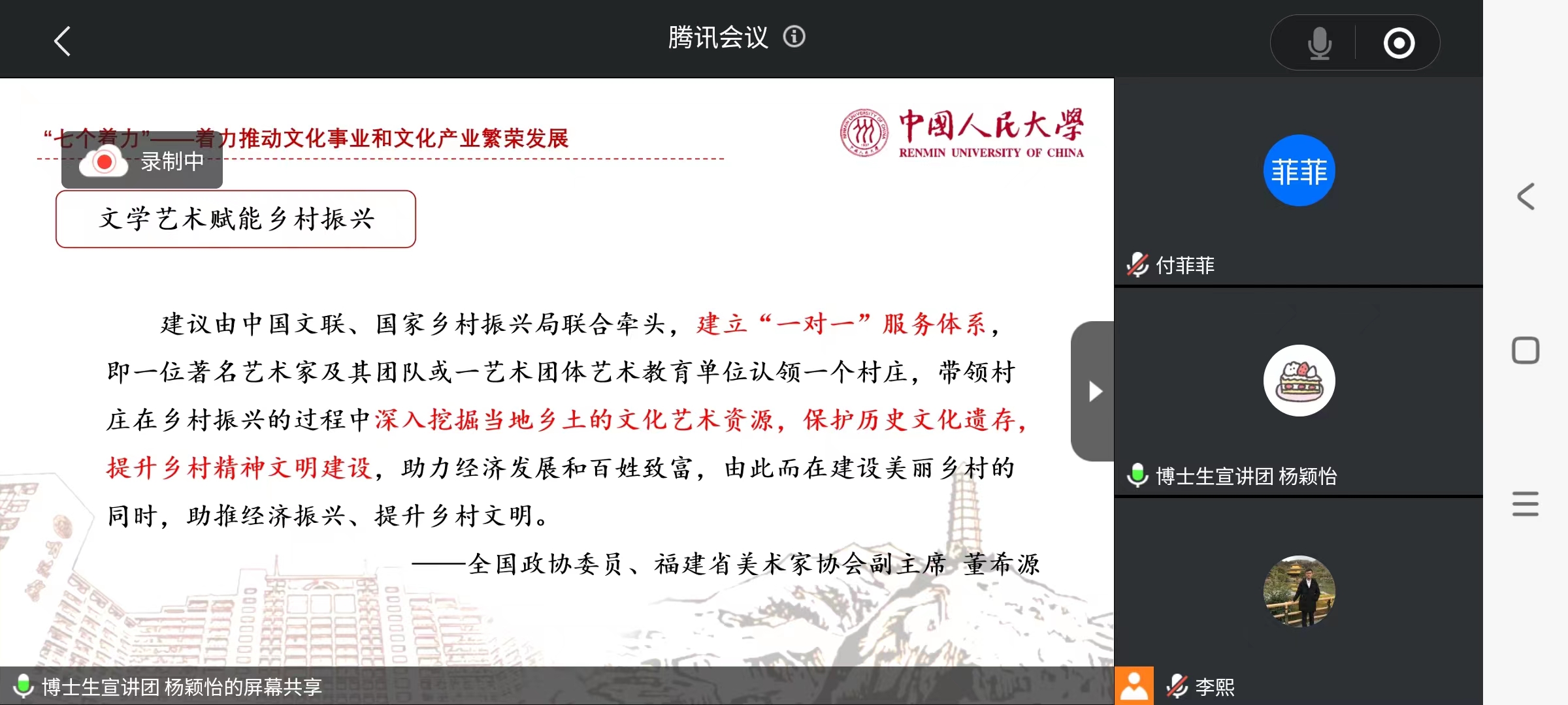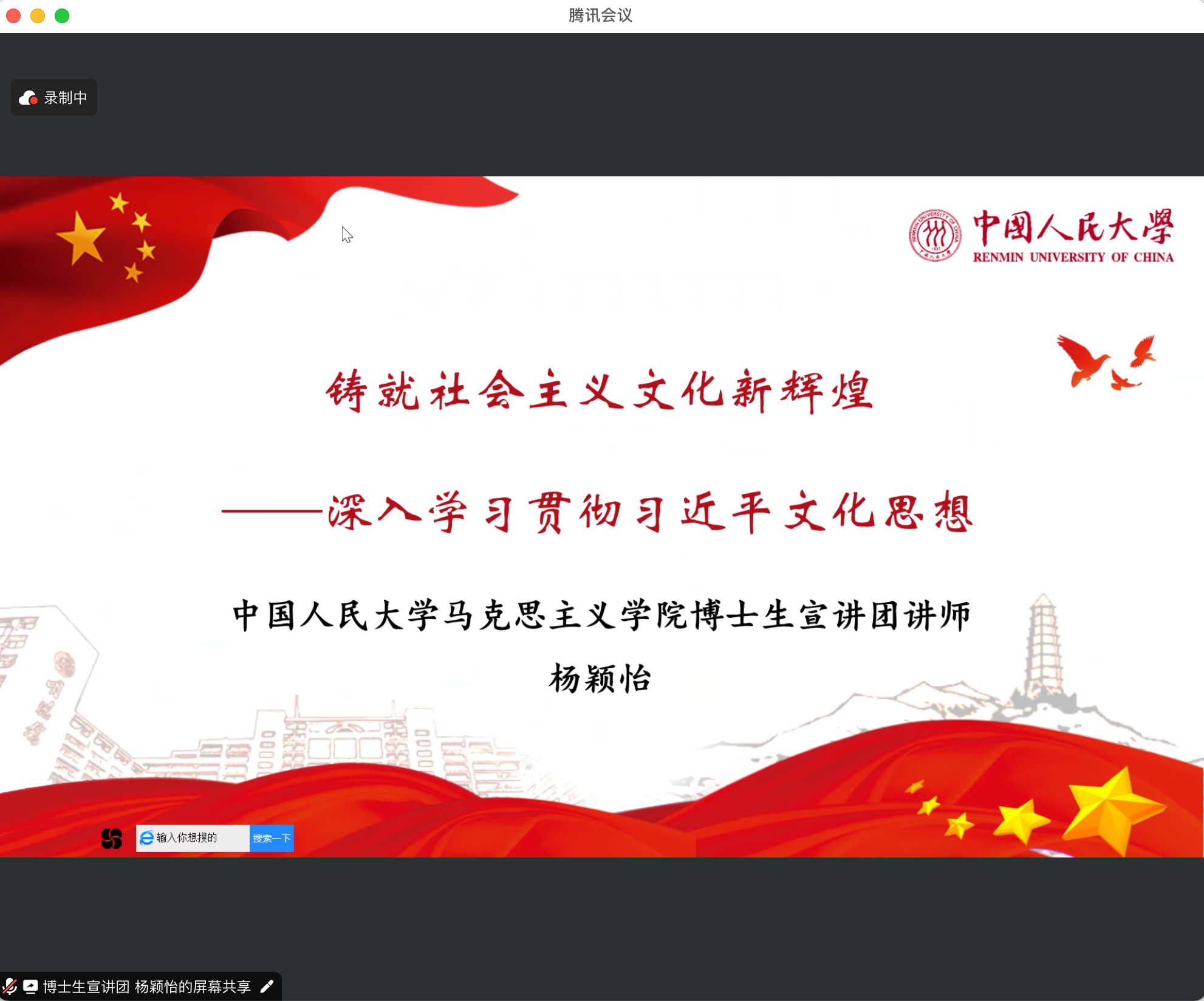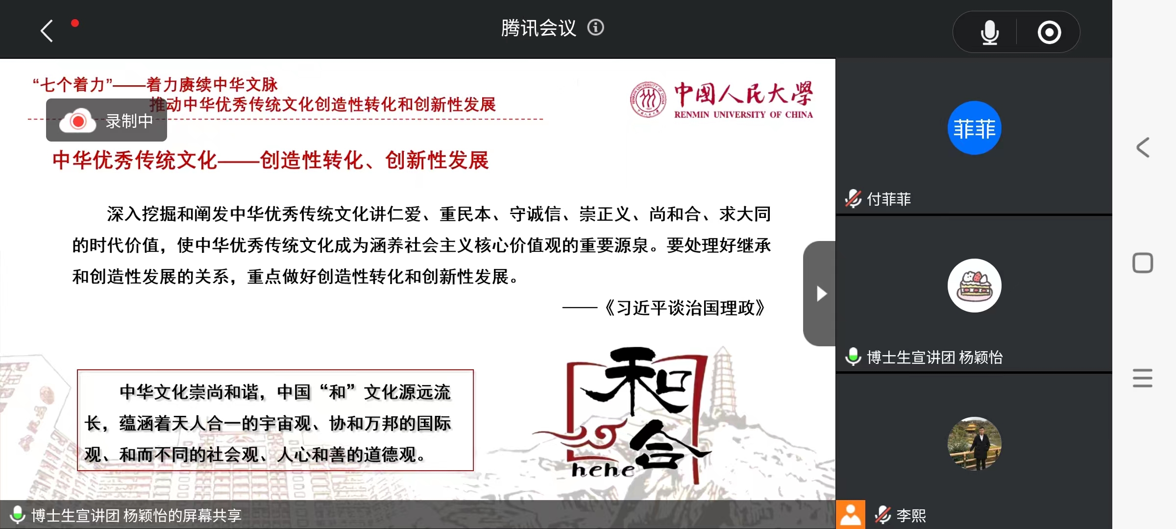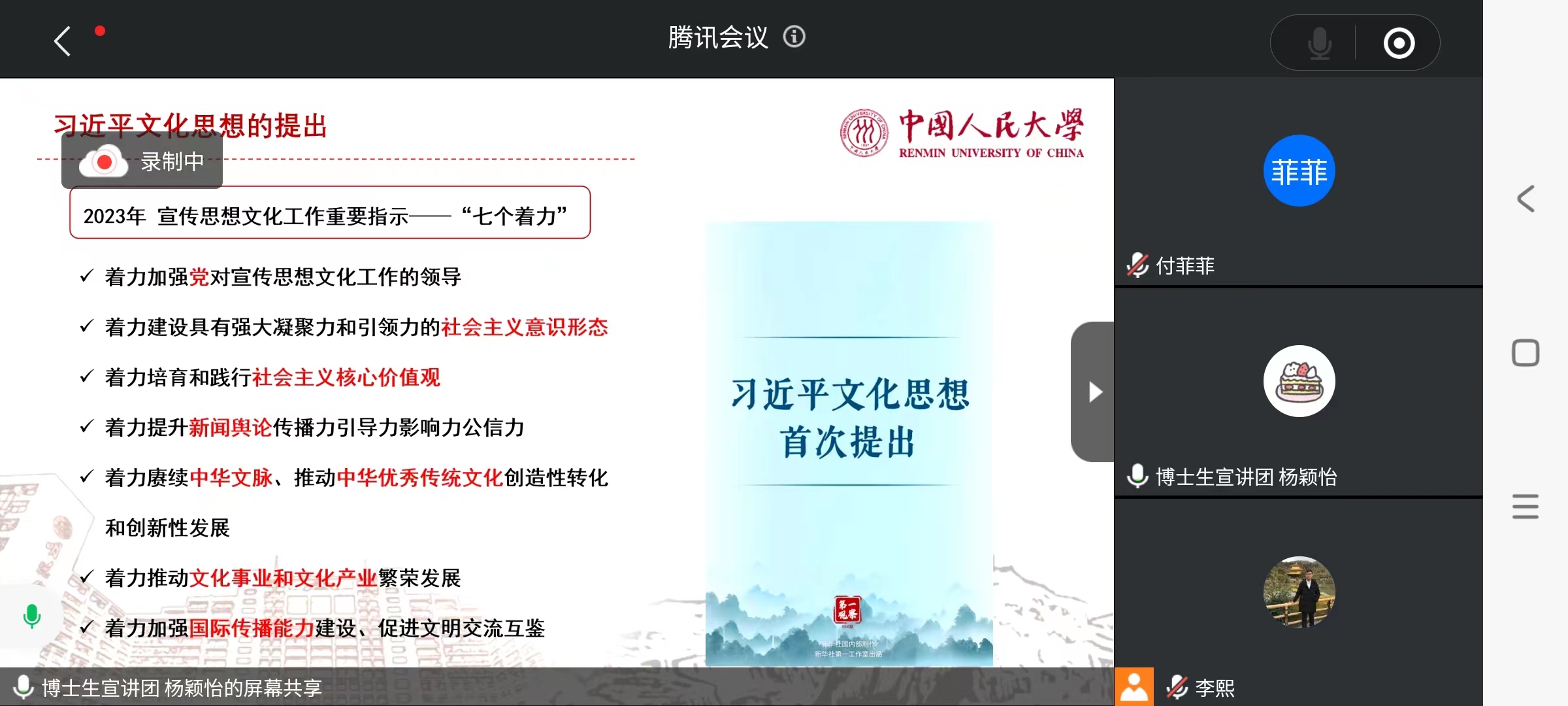 10月17日晚,高瓴人工智能学院2021级硕博联合党支部与艺术学院第一、第二党支部,通过腾讯会议线上开展习近平文化思想的理论学习。本次理论学习由马克思主义学院博士生宣讲团成员杨颖怡进行讲解。