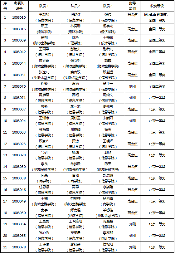 人大学子在全国数学建模竞赛中首获“Matlab创新奖”