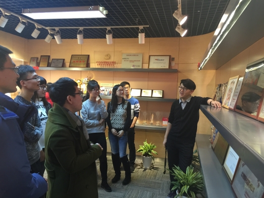 同学们参观了公司的办公环境。搜狗HR吴牧为同学介绍了搜狗的发展历程、所获成果及近期产品开发情况。在演播室,同学们亲身体验搜狗产品,与工作人员进行互动交流。