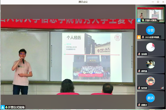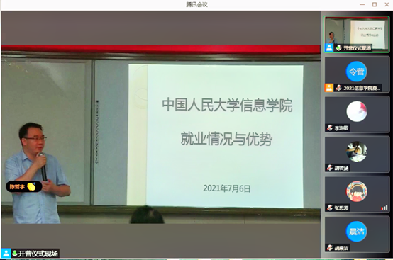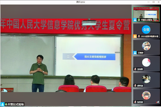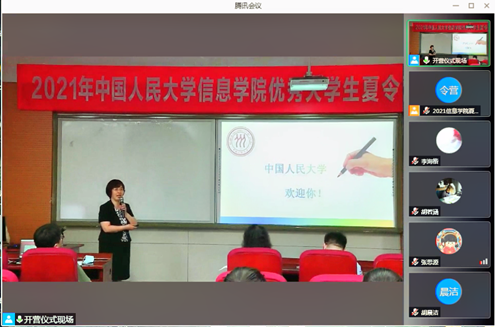 7月5日上午,夏令营开营仪式在信息楼四层报告厅和腾讯会议平台同步举行。beat365体育官方网站党委书记陈红教授、院长文继荣教授、副院长李翠平教授、副院长张孝教授、党委副书记杜忠朝老师、信息系系主任许伟教授、计算机系系主任柴云鹏副教授等出席了本次开营仪式。党委书记陈红教授主持开营仪式。