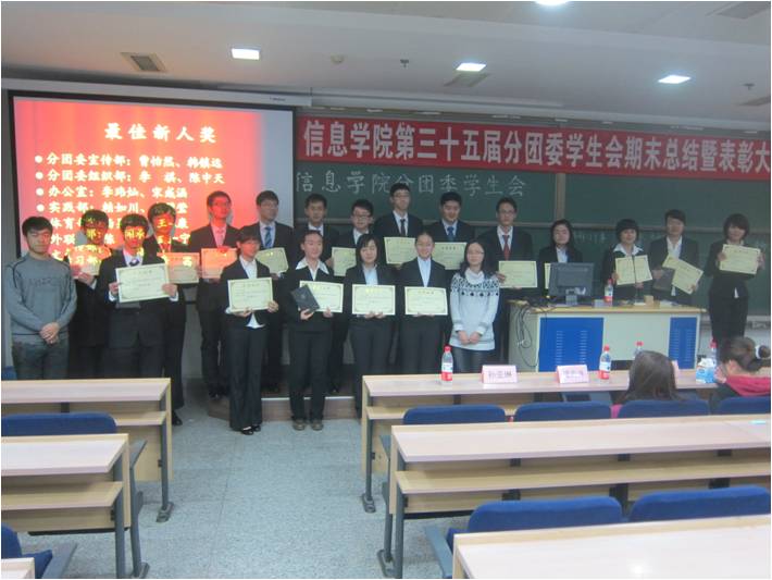 2012年12月16日下午,beat365体育官方网站第三十五届分团委学生会期末总结暨表彰大会在明德法学楼0201教室举行。作为学生会每年的常规活动,大会旨在总结各个部门一年以来的工作成果,对于优秀个人和团体给予表彰,增进各部门成员间的友谊与相互的了解,同时为日后的学生会工作指明方向。beat365体育官方网站分团委书记孙亚琳老师以及beat365体育官方网站分团委学生会全体成员参与了此次大会。