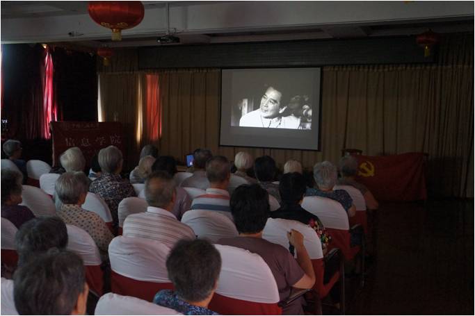 下午,志愿者们在多功能厅为老人们放映了主旋律电影《周恩来的四个昼夜》 。许多老人都对周恩来总理和曾经的革命岁月有着深切的感情和体会,放映现场座无虚席,影片引起了他们强烈的共鸣。电影结束后,志愿者们也与老人交流互动,请他们谈谈过去的日子以及对于在共产党领导下国家日渐强盛、人民生活水平不断提高的感受。一位来自沈阳的党员老教师向我们讲述了当年周总理在她面前指挥教师队伍的经历,把大家带回到了那段岁月;另一位老奶奶和我们分享了她年轻时在中央党校见到毛泽东主席的故事,让人感触颇深;老人们也纷纷表示“这个电影好”、“谢谢你们”。