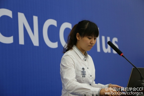 作为最年轻的讲者,博士生华雯被特别论坛CNCC Plus遴选为报告人,介绍她发表在数据库领域国际顶级会议的ICDE 2015(中国计算机学会A类期刊会议)最佳论文。在报告中,华雯介绍了计算机如何准确且快速地理解互联网时代的“快餐式”语言,以及这一项技术在语义检索、查询推荐、实体浏览等场景的应用。