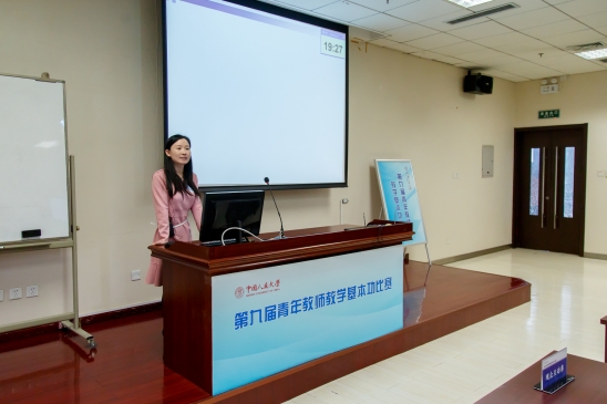 比赛中,参赛选手们通过PPT课件、板书、讲授等方式,将自己制作的教学设计方案融入到20分钟的课堂教学演示中,呈现出多样化的教学内容、差异化的教学组织、个性化的教学语言与教态和突出的教学特色。姜昊老师以单身女性的比例情况这一众人感兴的话题,讨论了特征值与特征向量的实际运用。黄文林老师声音洪亮,谈笑自若,向大家深入浅出地讲解了大数定律。张金玲老师讲授了多媒体技术与应用课程中的颜色模型内容。