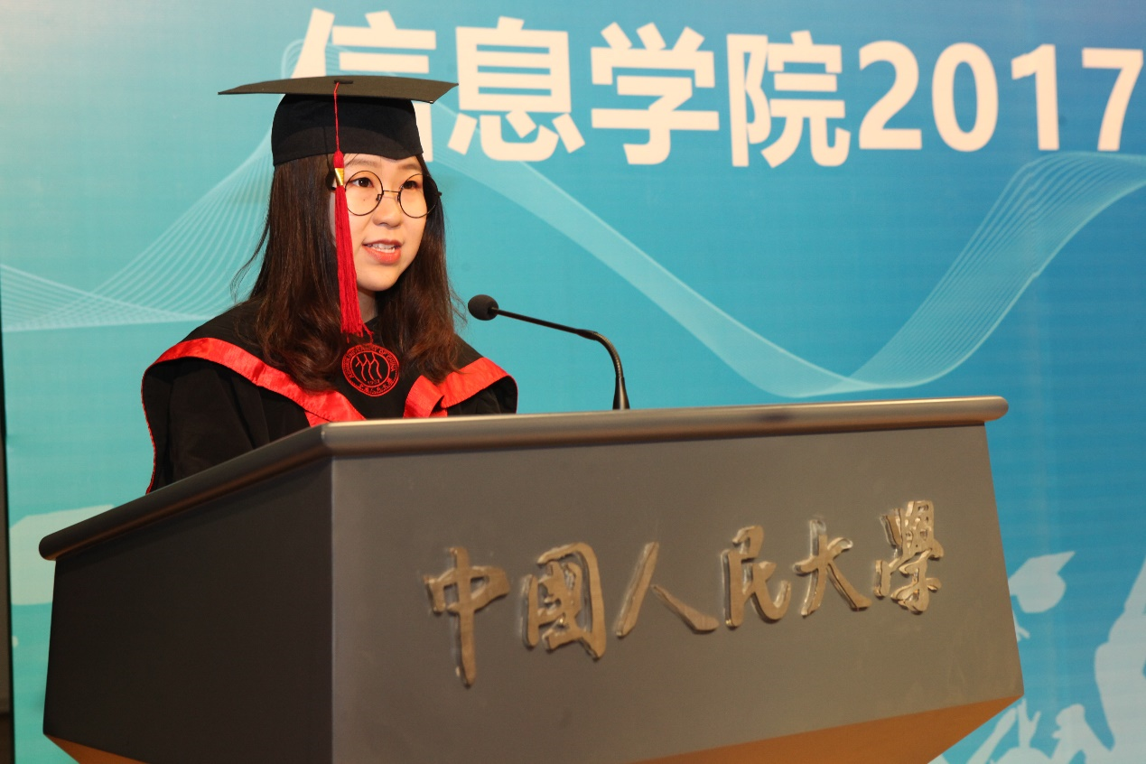 beat365体育官方网站本科毕业生代表刘艺菲同学发言。她表示,毕业生们会始终争做“国民表率,社会栋梁”,始终秉持“实事求是”,始终牢记自己是一名信息骄子。