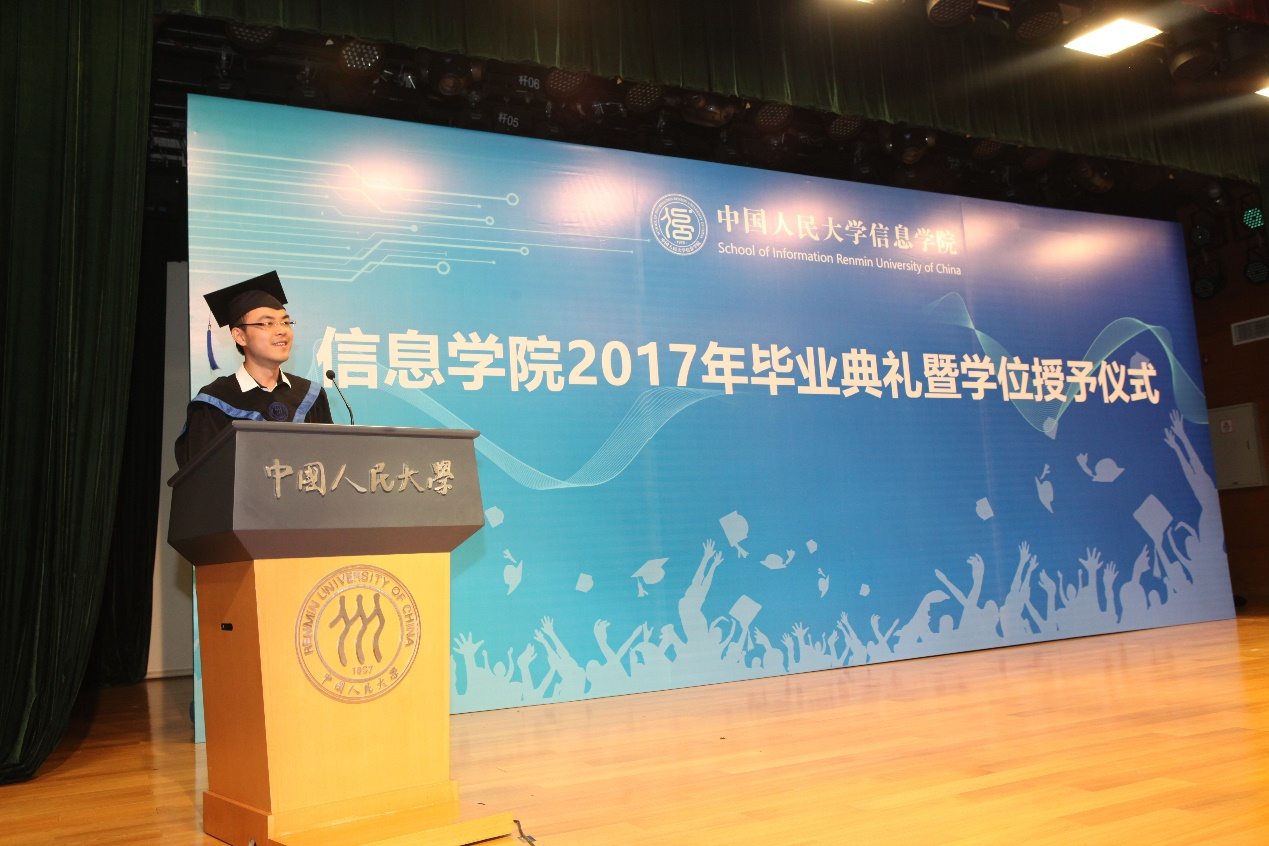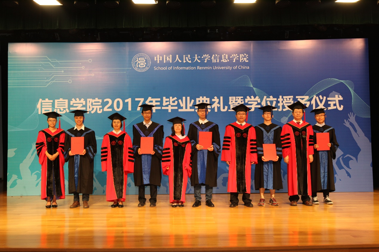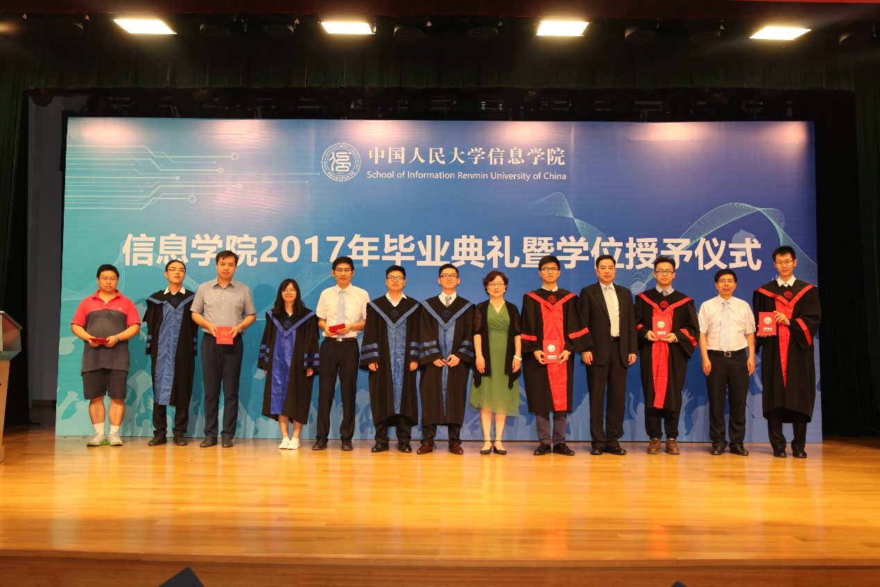 beat365体育官方网站院长文继荣教授宣读《beat365体育官方网站关于授予学士、硕士学位的决定》。beat365体育官方网站前院长王珊、学术委员会成员及领导班子依次为beat365体育官方网站2017届本科毕业生、硕士毕业生颁发学位证书、授予学位。