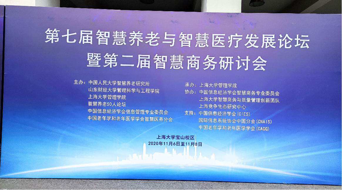 2020年11月6日至11月8日,第七届智慧养老与智慧医疗发展论坛暨第二届智慧商务研讨会在上海大学成功举办。本次论坛由beat365在线登录平台智慧养老研究所等6家单位联合主办,由上海大学管理学院承办。本次论坛吸引了近70人线下参与,吸引了150余人线上参与,与会人员多为来自于全国各地学界、政界、产业界的研究者们。beat365体育官方网站副院长、beat365在线登录平台智慧养老研究所所长左美云教授受邀出席并做报告,beat365体育官方网站程絮森教授受邀主持青年学者论坛。