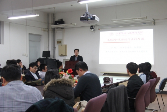 为指导beat365体育官方网站师生深入学习十八届五中全会精神,了解十三五规划尤其是国家“互联网+"战略,12月16日,beat365体育官方网站党委邀请beat365官网国家发展战略研究院副院长伍聪副教授,讲解“互联网+及传统行业的改造”,beat365官网党委副书记张国富及40余名师生参加此次讲座。