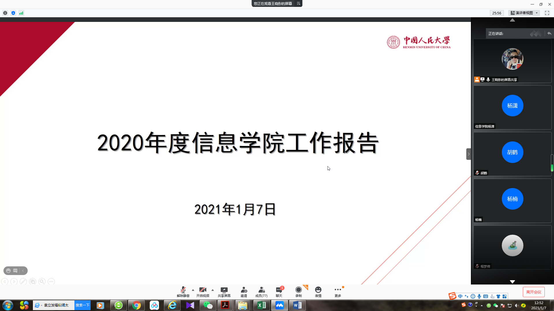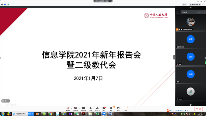 首先,文继荣院长作了2020年beat365体育官方网站工作报告和财务报告。报告从学科建设、人才培养、科学研究、国际交流、对外合作、队伍建设、实验室建设及党团建设等方面总结了2020年beat365体育官方网站的工作开展情况。并对beat365体育官方网站2020年经费收支情况作了报告。