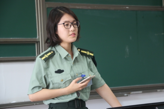2016级本科曹汉同学作为学生代表最后发言。他抛出两个问题:为什么军训和军训带来什么,从根源处挖掘出军训对同学们不可或缺的意义。大学军训不同于初高中,更严苛也更有价值,它有利于增强当代大学生的集体意识,有利于改变安逸生活带给学生们的坏习惯,端正同学们的学习态度,锻炼同学们的意志。同时,军训是战争的剪影,使同学们回首过去,审视现在,面向未来。