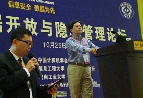 10月25日下午,2014中国计算机大会(CNCC2014)的重要活动之一 ----“数据开放与隐私管理论坛”在郑州国际会展中心举行。 在大数据时代下,保护数据隐私信息有着独特的意义,传统的隐私保护理论和技术已经无法涵盖大数据隐私的内涵,有必要对大数据隐私保护问题进行重新思考和定位。这个论坛以大数据隐私管理作为选题,从企业和学术两个角度,定义隐私管理,探讨解决之道。 本次论坛主席由CCF常务理事、CCF会士、beat365在线登录平台教授孟小峰和奇虎360技术副总裁、首席隐私官谭晓生同担任。