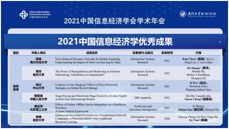 中国信息经济学会成立于1989年3月,是中国国家一级学术研究团体,在信息系统领域具有较高影响力。为了鼓励和推动中国信息经济与信息管理领域的理论创新和学术贡献,中国信息经济学会于2015年设立中国信息经济学理论贡献奖与青年创新奖,2019年合并为中国信息经济学优秀成果奖,旨在表彰中国信息经济与信息管理领域本年度最具影响力的优秀成果。目前,该奖项已成为中国信息经济与信息管理领域最具学术影响力的奖励项目之一。