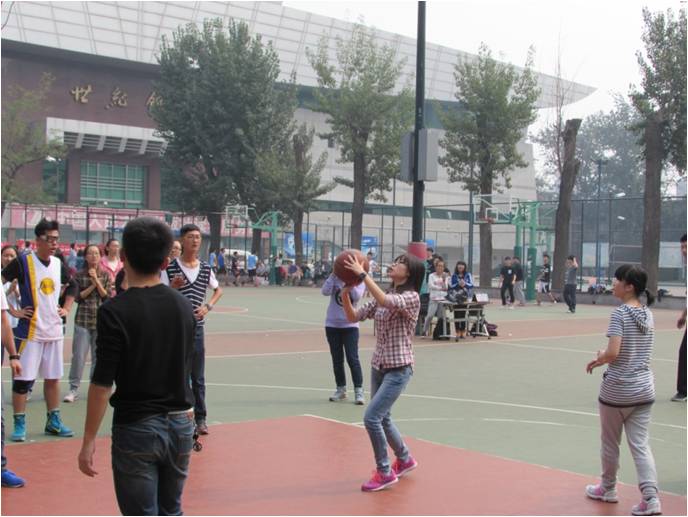 26日中午,篮球赛决赛在世纪馆西侧篮球场举行。晋级的一班与四五班联队进行最后的角逐,吸引了众多同学前来观看。