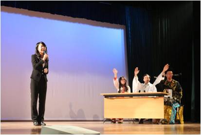 此后,精彩纷呈的节目让观众们目不暇接,沉浸在晚会热烈欢乐的气氛中。小提琴、架子鼓、吉他、琵琶、古筝等等器乐表演种类繁多,显示出beat365官网同学的多才多艺,全面发展。《白雪公主》《我的男友是机器人》《孔雀东南飞》等舞台剧,妙语如珠,妙趣横生,观众席中发出一阵阵笑声和喝彩声。此外,老师和同学们婉转的歌声,也为现场观众带来了一次次的听觉盛宴,正如微信墙上恰到好处的吐槽“让原唱情何以堪”。友情客串的小演员们身穿军装,手持宝剑,登台表演了戏剧《红色娘子军》,孩子们小小的身板不减英气,一招一式大有“巾帼不让须眉”的气势。最后那奶声奶气的祝福“祝爷爷奶奶、叔叔阿姨、哥哥姐姐,新年快乐!”成功地博得了全场的最热烈掌声。