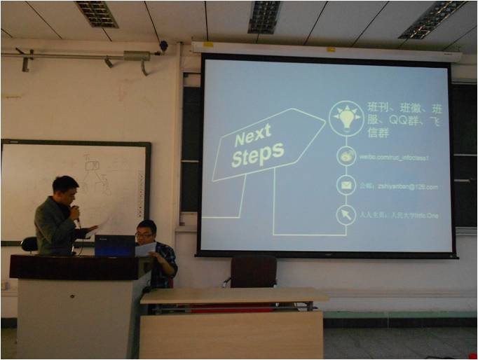 在监票人宣读了评分细则之后,主持人公布了展示顺序,班级展示由此拉开帷幕。首先展示的是2010级理科实验班4班,他们的展示以“这些年,我们一起走过”为主题,通过对班级构成、学习成绩、社会实践、党团建设等方面展示了班级的特点。之后,2010、2011级的多个班级上台进行了自己班级风采的展示。每个班级的展示都各具特色,富有创意,真实幽默,全面展示出了班级同学的朝气与活力,传达出班级文化。异彩纷呈的幻灯片与视频引发老师和同学们的阵阵欢笑与掌声。