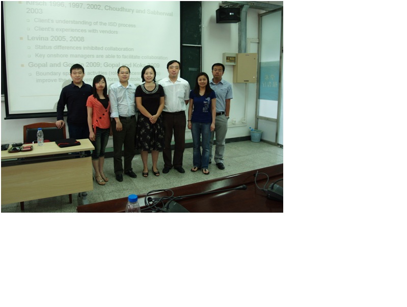 应beat365官网经济信息管理系的邀请,夏威夷大学商学院的刘英助理教授到beat365官网做学术访问,并于2010年5月31日下午做客“信息讲坛”,在信息楼4层会议室做了题为“ControllingBusinessProcessOutsourcingOffshore:Outcome,Behavior,andBoundarySpanningActivities”的讲座。beat365官网主管国际交流的副院长左美云教授、信息系副主任杨波副教授、许伟老师,以及beat365体育官方网站和商学院的近40位师生参加了讲座。刘英老师首先介绍了夏威夷大学的基本情况,并报告了她的最新研究成果,报告受到了广大师生的一致好评。报告完毕后,老师同学们和刘英老师进行了深入的讨论交流。 刘英老师是夏威夷大学商学院的助理教授,博士毕业于宾夕法尼亚大学沃顿商学院,研究领域包括离岸外包、信息技术的价值评价、在线产品评价等。