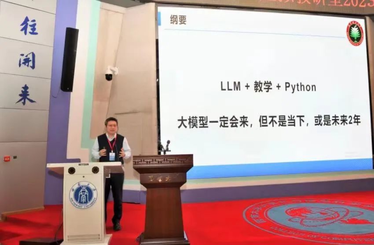 北京理工大学嵩天教授以“大模型辅助的大学Python课程教学改革新探索”为题做了大会报告。报告介绍了利用大模型开展程序设计的实例与分析、大模型融入编程教与学的方式及Python教学改革的新探索。