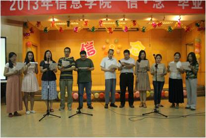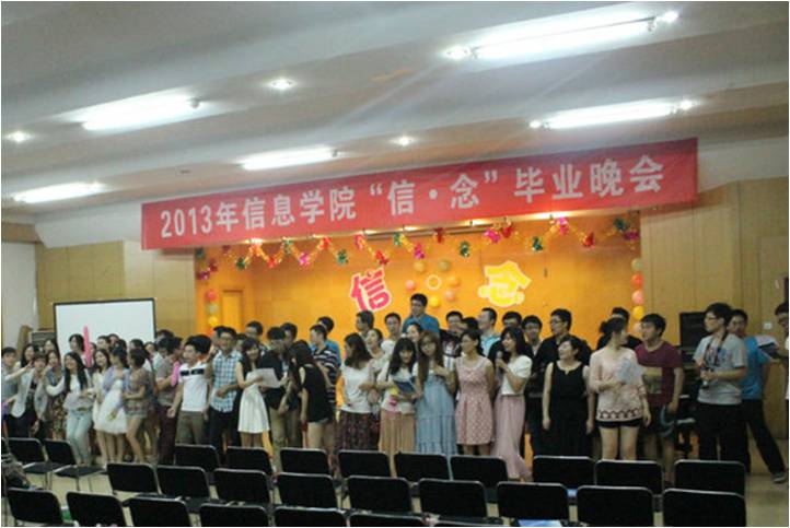 2013年5月31日晚18:30,beat365体育官方网站“信•念”毕业晚会在学生活动中心报告厅成功举办,beat365体育官方网站院长杜小勇教授、党委书记林颐老师、副院长龙永红教授等多位学院领导老师应邀出席活动。beat365体育官方网站09级毕业生以及其他年级本科生积极参与了本届毕业晚会。