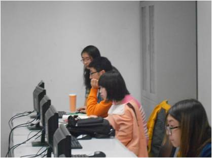 (图说:辅导员为同学解决程序设计问题和同学们完成辅导员布置的题目)