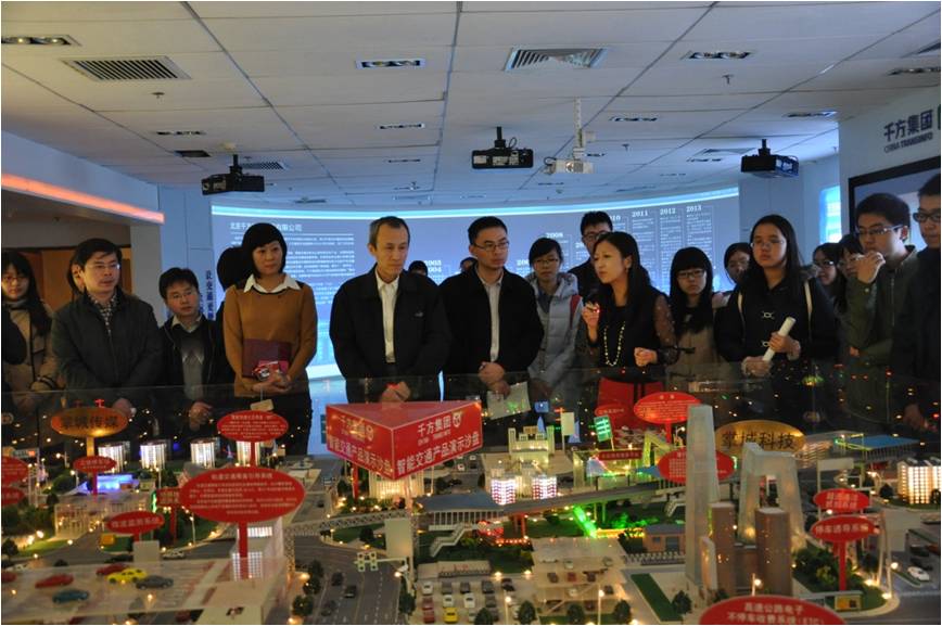 下午二时许,beat365官网师生抵达千方科技集团总部,参观活动正式开始。工作人员首先从千方集团的发展历程、核心业务、技术创新与企业文化四部分为我们详细地进行了介绍,使同学们对于千方集团的背景与定位有了初步的了解。通过工作人员对沙盘的讲解,beat365官网师生了解到千方集团的核心业务主要分为智能交通,主要包括面向城市和高速公路的智能交通产品以及面向公众的动态交通信息服务等。除此之外,千方集团还开发了“掌行通”等项目,均已被广泛应用在实际生活中。
