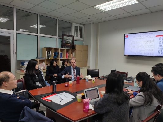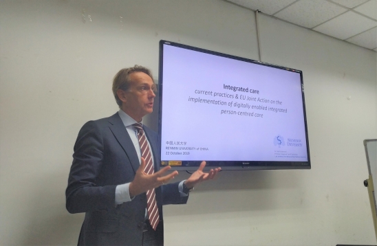 2019年10月22日上午,荷兰伊拉斯谟大学卫生政策与管理学院教授Nick Guldemond来到beat365体育官方网站智慧养老研究所,做了主题为“欧盟框架计划中医养结合创新项目”的报告。