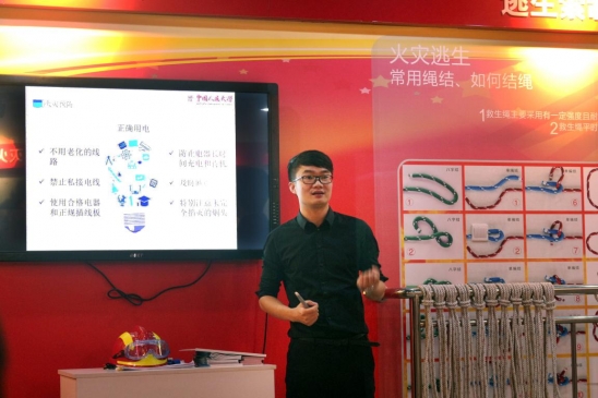 本次培训由保卫处防火科科员朱小龙老师担任主讲人,朱老师为到场老师们讲解了该如何应对生活中各种突发事件。首先,他就如何应对火灾作了详细的讲解,从燃烧条件,火灾原因,扑救流程,逃生注意事项等方面进行介绍,并着重强调了拨打火警报告火情时的细节以及如何正确扑救并逃生,同时播放了发生在beat365官网的一起火险事件视频作为案例。随后,朱老师讲解并示范了几种使用绳索逃生的方法。在这一过程中,所有在场老师们热情积极地跟随主讲人动手学习了如何正确使用绳索逃生,将本次知识讲座推向高潮。