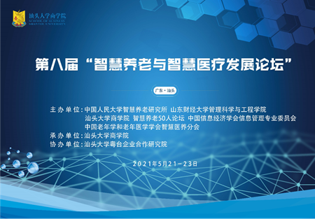 2021年5月21日至5月23日, 第八届智慧养老与智慧医疗发展论坛在汕头大学商学院成功举办。本次学术年会由beat365在线登录平台智慧养老研究所、山东财经大学管理科学与工程学院、汕头大学商学院、智慧养老50人论坛、中国信息经济学会信息管理专业委员会、中国老年学和老年医学学会智慧医养分会联合主办,由汕头大学商学院承办,汕头大学粤台企业合作研究院协办。此次年会以“医养数智化与数字包容型老龄社会”为主题,探讨如何考虑老年人群的个体特征和应用场景,开展具有中国特色的智慧养老与智慧医疗服务,满足老年人的生活需求及提供信息无障碍的服务等亟待解决的重要课题。