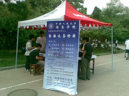 一、为了集中服务同学,提高服务效率,计算机协会针对以笔记本作为主要电脑的学生群体开展了校园义诊活动,该活动每周三中午十一点准时在理工配楼门前空地举办。本学年共成功解决各类电脑问题75例(由于前来维修的同学太多,所以仍有一部分没有记录在册),前来咨询者更是不计其数,且给予了此次活动很高的评价,在活动期间,多次有青年人大,信息月刊,新闻学院等多个媒体部门来采访计算机协会的技术人员,这充分体现了此次活动在广大学生中带来的影响力之巨大。义诊维修服务台前人来人往,形成了一道美丽的风景线。